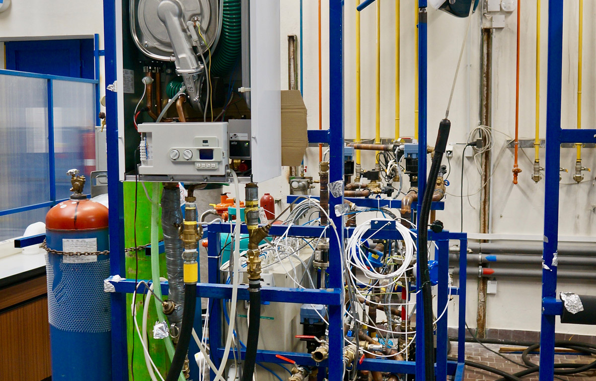 Po rozbalení se kotel ve zkušebně umístí na speciální kovový stojan a připojí na měřící stolici simulující topný okruh, dále na elektřinu, vodu a plyn, stejně jako v běžné domácnosti. Dále se zařízení připojí na diagnostiku a počítač, který zaznamenává a vyhodnocuje celý průběh měření. Po zkalibrování (nastavení) kotle začnou technici ústavu se samotnými zkouškami.