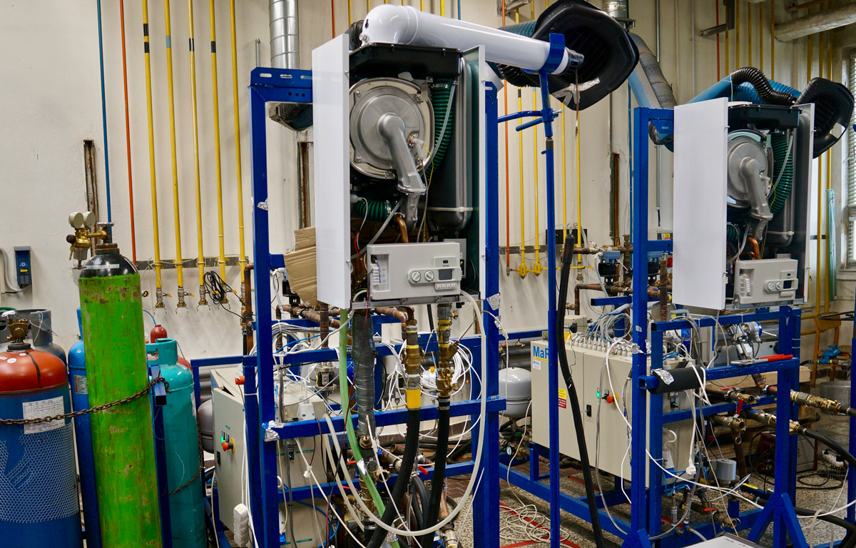 V této zkušebně testujeme pouze kotle na plyn, kotle na pevná paliva se testují v jiném oddělení, mají úplně jiné hodnoty emisních norem, musí se testovat i výhřevnost použitého paliva, měřit hodnoty polétavého prachu a dalších látek, vznikajících při spalování uhlí, dřeva nebo pelet.