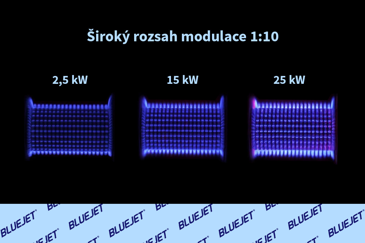 - Široký rozsah modulace až 1:10 - od 2,5 kW do 25,0 kW