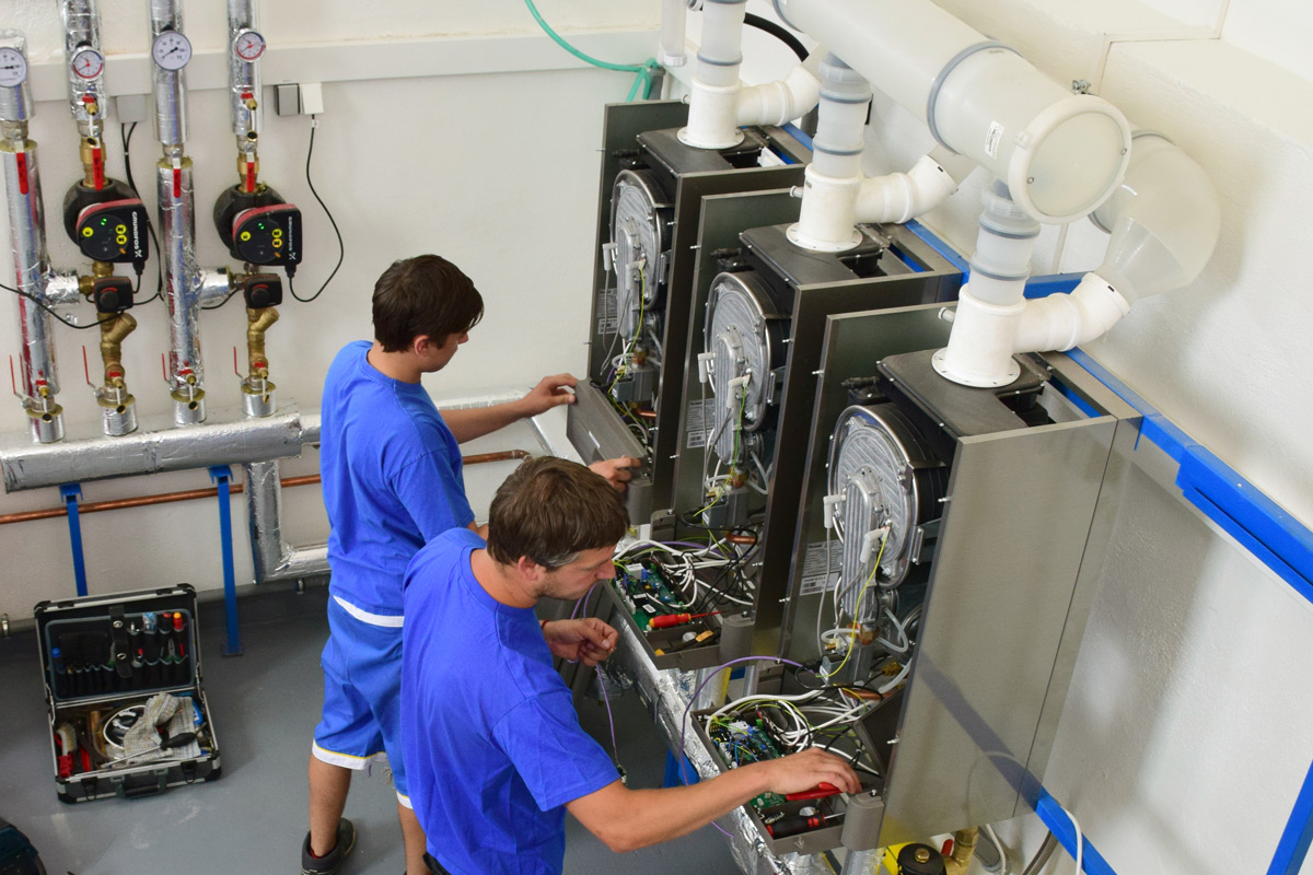 Systém kaskádové kotelny spočívá ve spojení několika menších závěsných kotlů, které spolu díky sofistikované regulaci komunikují a umožňují tak bezproblémový provoz. Za provozu se pak kotelna chová jako jeden celek, výhodou však je široká modulace, tedy schopnost pracovat od minimálního výkonu jednoho kotle, až po celkový výkon kotlů v kaskádě. V tomto ohledu jsou kaskádové kotelny nadmíru hospodárné a mohou přizpůsobit výkon vždy aktuálnímu stavu tepelných ztrát při konkrétní venkovní teplotě.